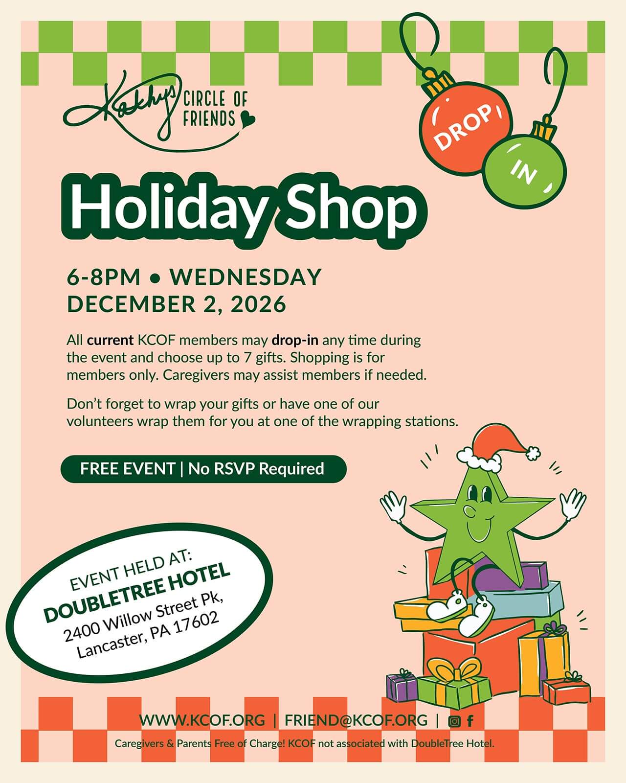 All current KCOF members may drop-in any time during the event and choose up to 7 gifts. Shopping is for…