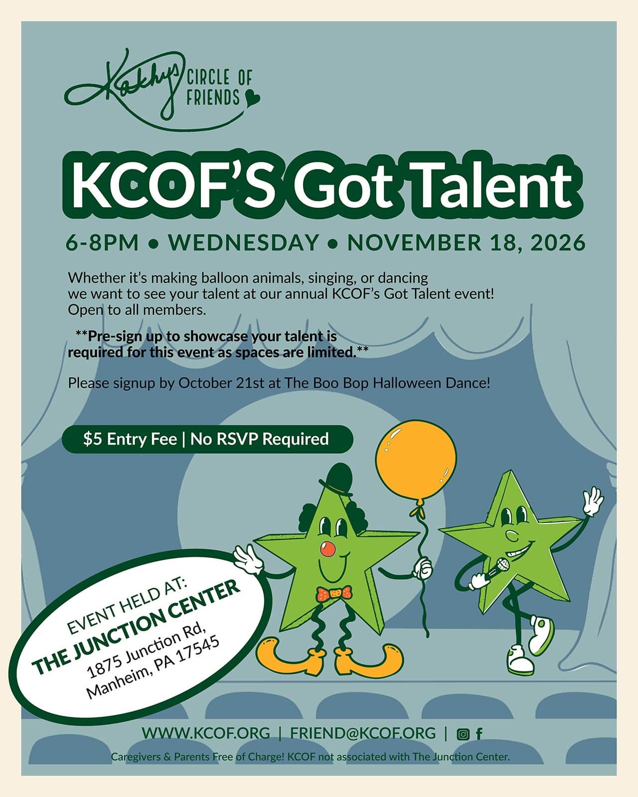 Whether it's making balloon animals, singing, or dancing - we want to see your talent at our annual KCOF's Got…